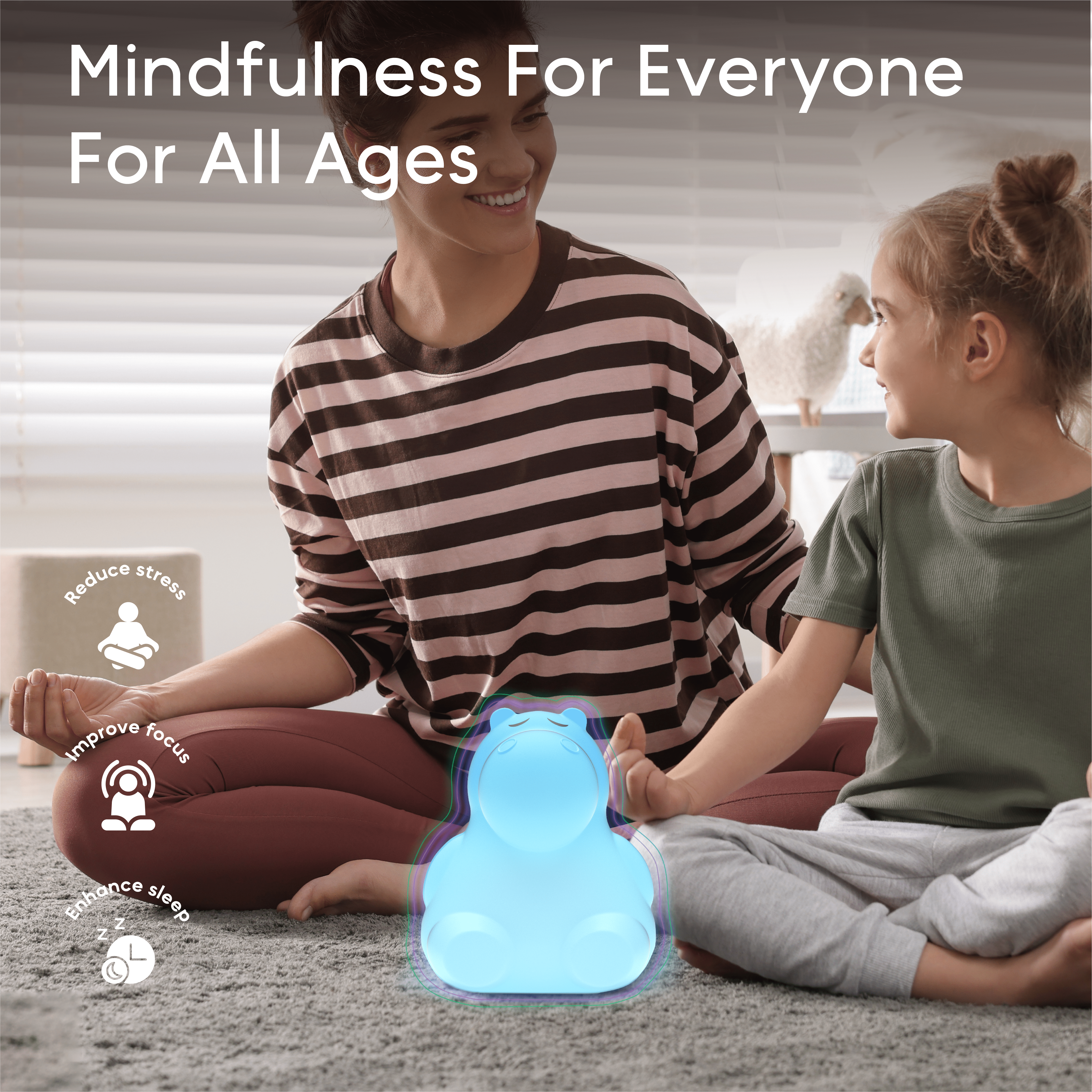 Huggo the Hippo is the chunky, lovable breathing buddy that helps kids calm down, focus, and drift off to sleep. With soft squeezes and soothing light patterns that guide mindful breathing, Huggo makes bedtime and big feelings easier—for kids and parents alike.