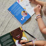 Kids love learning about the history and technique behind the two handmade traditional bracelets, a special keepsake with the kit.
