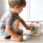 This complete wooden espresso set gives a little one a feel of a real coffee machine. With its buttons and accessories, the young barista will make their favorite drinks while having a latte of fun!
