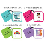 Kids love learning about the diverse world they live in, all while making up the silliest, complex, outrageous stories. The perfectly sized flashcards for their little hands make them ideal for car trips or at the dinner table!