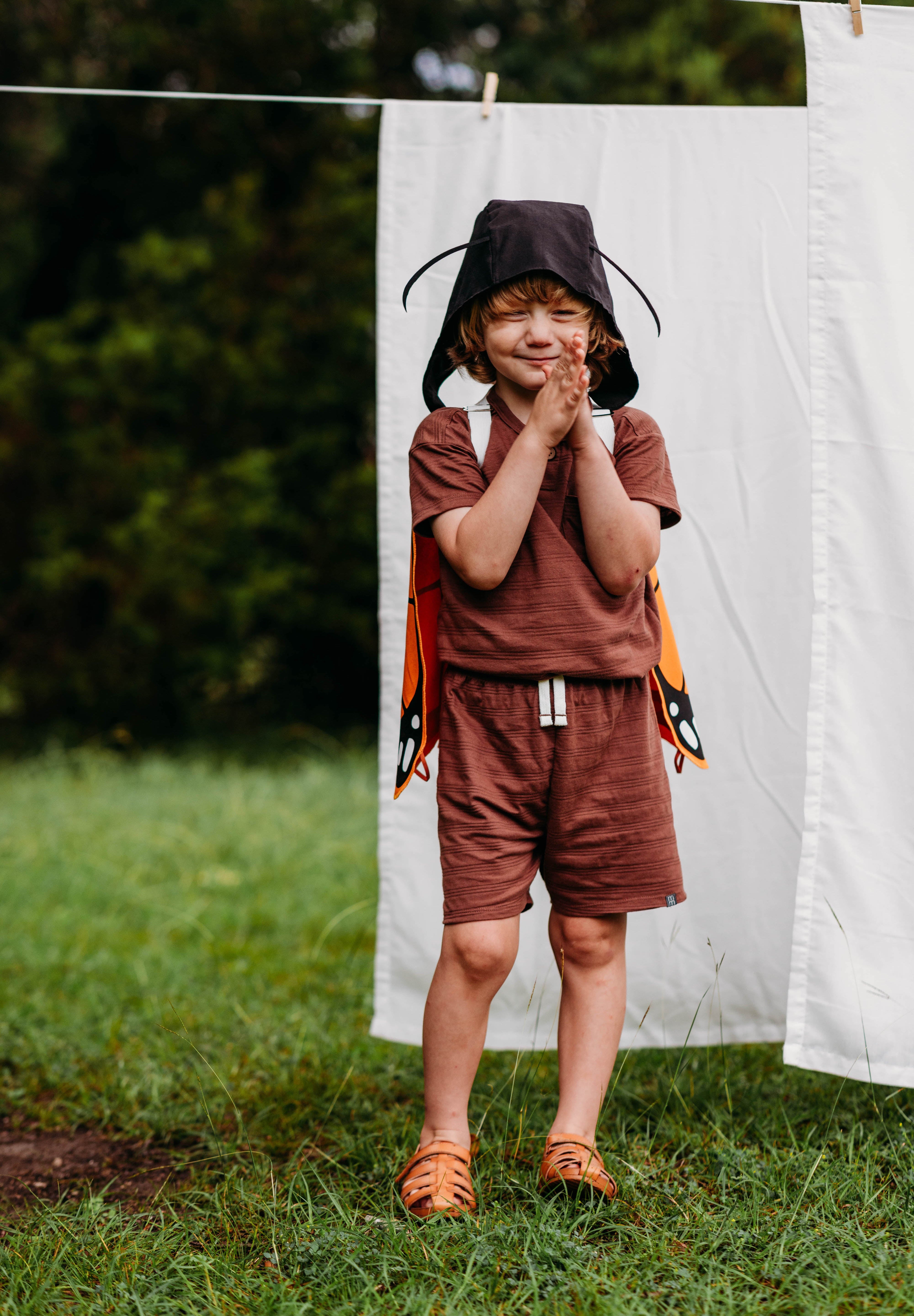 No bug costume is complete without a playful pair of antennae! Our Antennae Hat for kids is made from a luxurious black linen-cotton blend and topped with soft, floppy felt antennae that bounce and bob with every move. Designed to pair perfectly with our Butterfly Wings or Ladybug Costume, it’s a whimsical finishing touch for any little nature lover’s dress-up adventures.