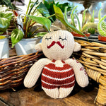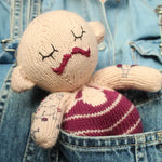 Not just any rattle, this ingeniously designed soft toy is handknitted with merino wool known to have many benefits such as odorless, soft and effective in regulating temperature - making it the perfect sleeping companion. Choose from two different skin tones for your little one.