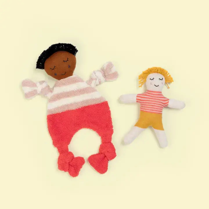 This 100% cotton knit buddy cuddle cloth is soft and cozy, making it a perfect soother for little ones. A contemporary alternative to the traditional human doll, these dolls have a unisex vibe that is sure to encourage plenty of imaginative play and conversation.