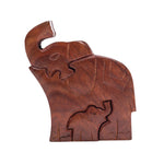 Mom and Baby Elephant Puzzle Box - Hand Carved Wood, Fair Trade