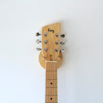 A Loog guitar wall hanger that neatly stores any loog guitar and that fits in well in any playroom or bedroom.