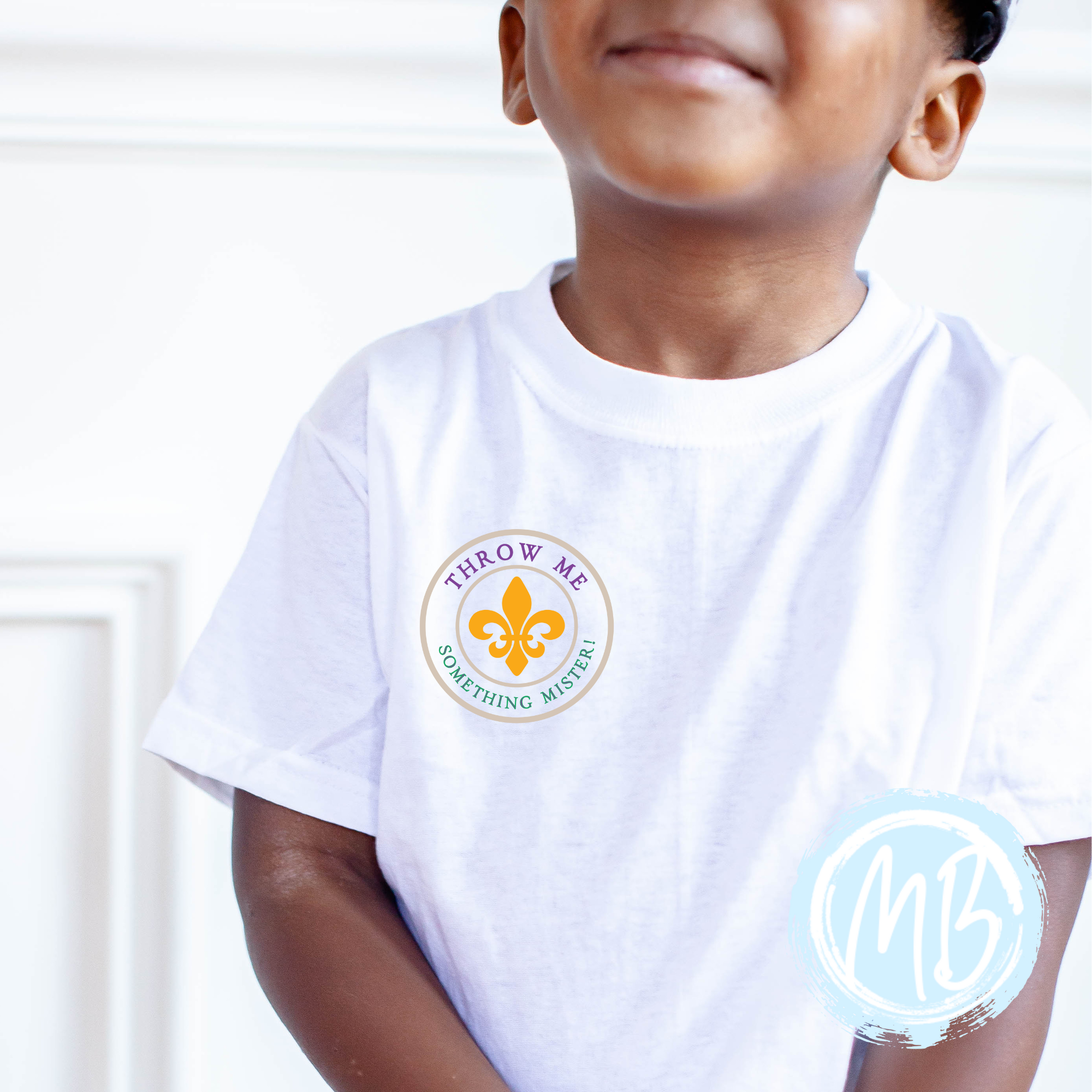 Throw Me Something Mister Toddler, Youth or Adult Tee Design on Back