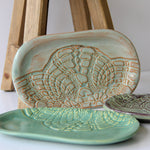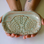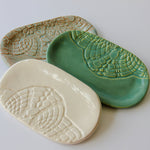 These beautiful handmade soap dishes are one of our bestsellers! Each soap dish is hand-pressed with lace to create intricate and unique patterns, and is sure to add a special touch to your bathroom or kitchen.