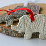 These adorable elephant ornaments are perfect to hang on the Christmas tree, tie to a gift, or hang in your window. These precious, handmade elephant ornaments are pressed with lace to create unique and beautiful patterns, and are sure to make you and your loved ones smile!.