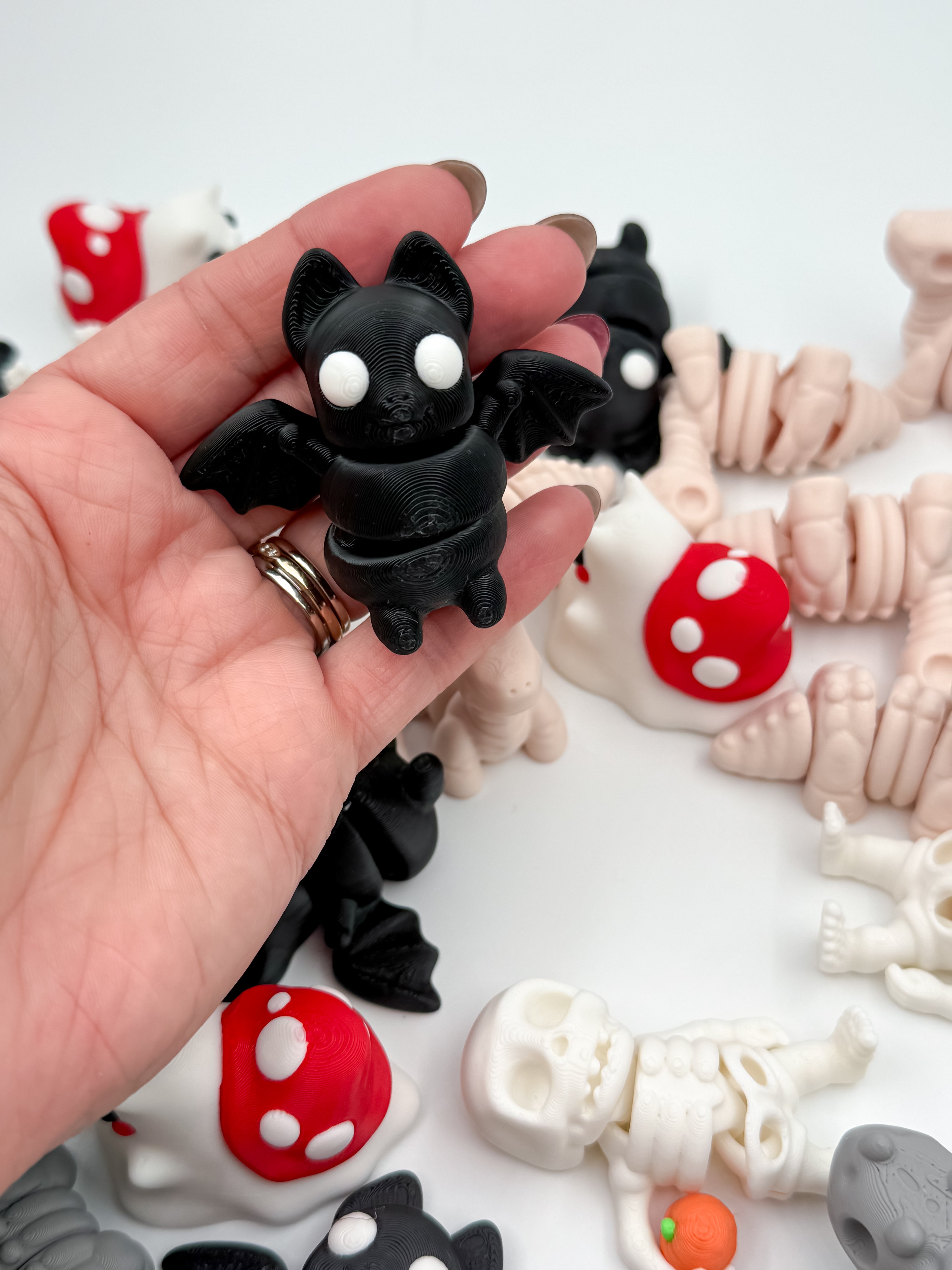 Get ready for spooky season fun with this 3D printed Halloween mystery pack of articulated fidgets! Each pack includes 3 surprise critters—you might receive skeletons, bats, ghosts, mushrooms, or other fall-inspired designs. Every toy is fully articulated for a wiggly, bendy, and fidget-friendly experience that’s as fun to display as it is to play with.