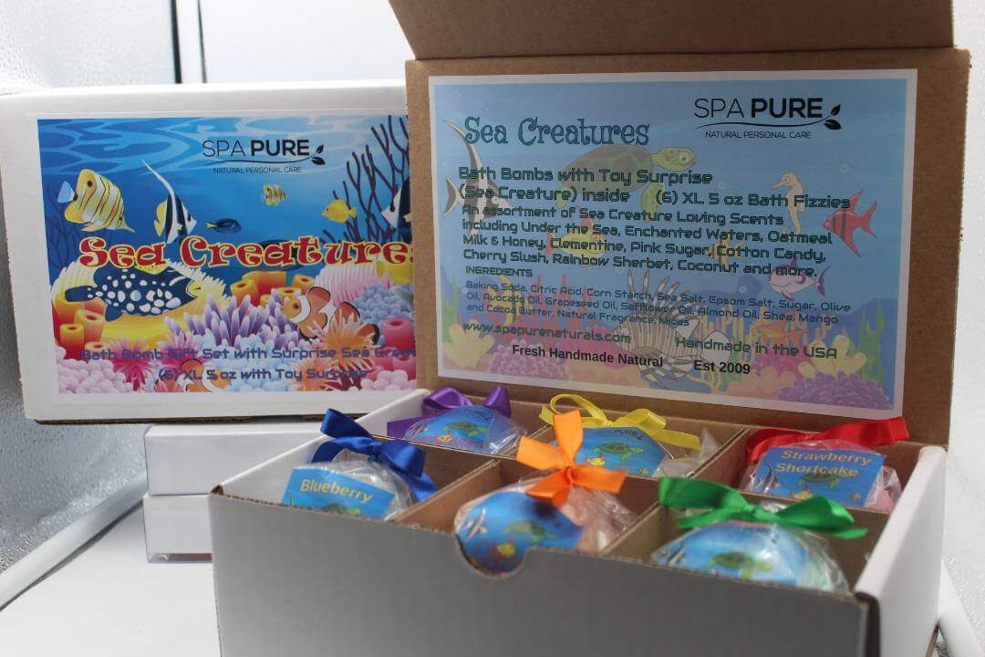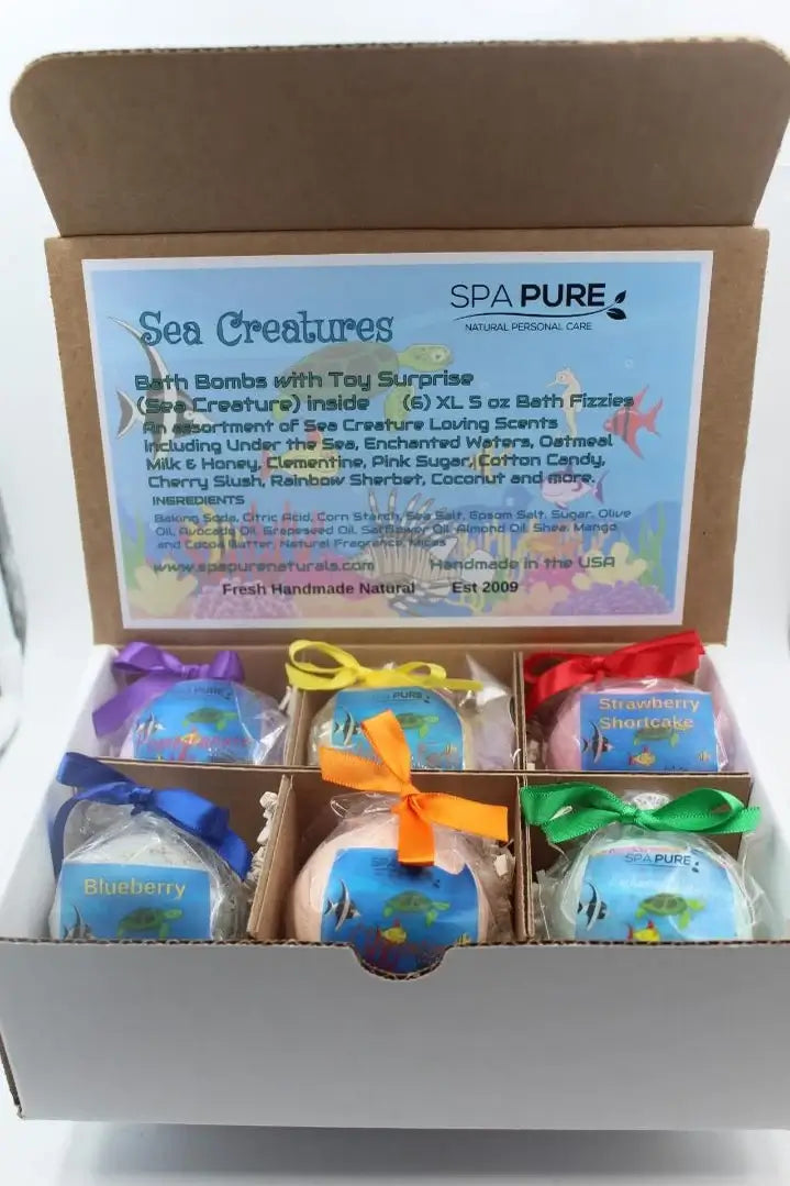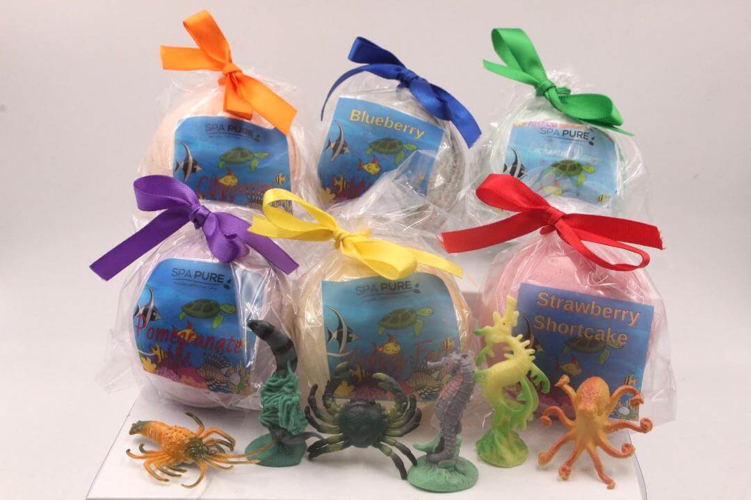 Kids love seeing the bath bombs color their bath time all while revealing a surprise collection of sea creatures!