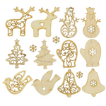 This beautiful set of Wooden Ornaments is ready for you and your little one to get creative. This set consists of 12 pieces of unfinished wooden cutouts, it includes the following Christmas ornaments: a moose, a snowman, a Christmas tree, a glove, a dove, and a bell. Each piece is handcrafted and has been sanded smooth so it is ready for your next arts and crafts project. You can finish them however your child would like. Help to develop your child's artistic and creative skills and help them to hand paint each piece. It is a great set for creative and imaginative play and makes a perfect gift for someone very special.