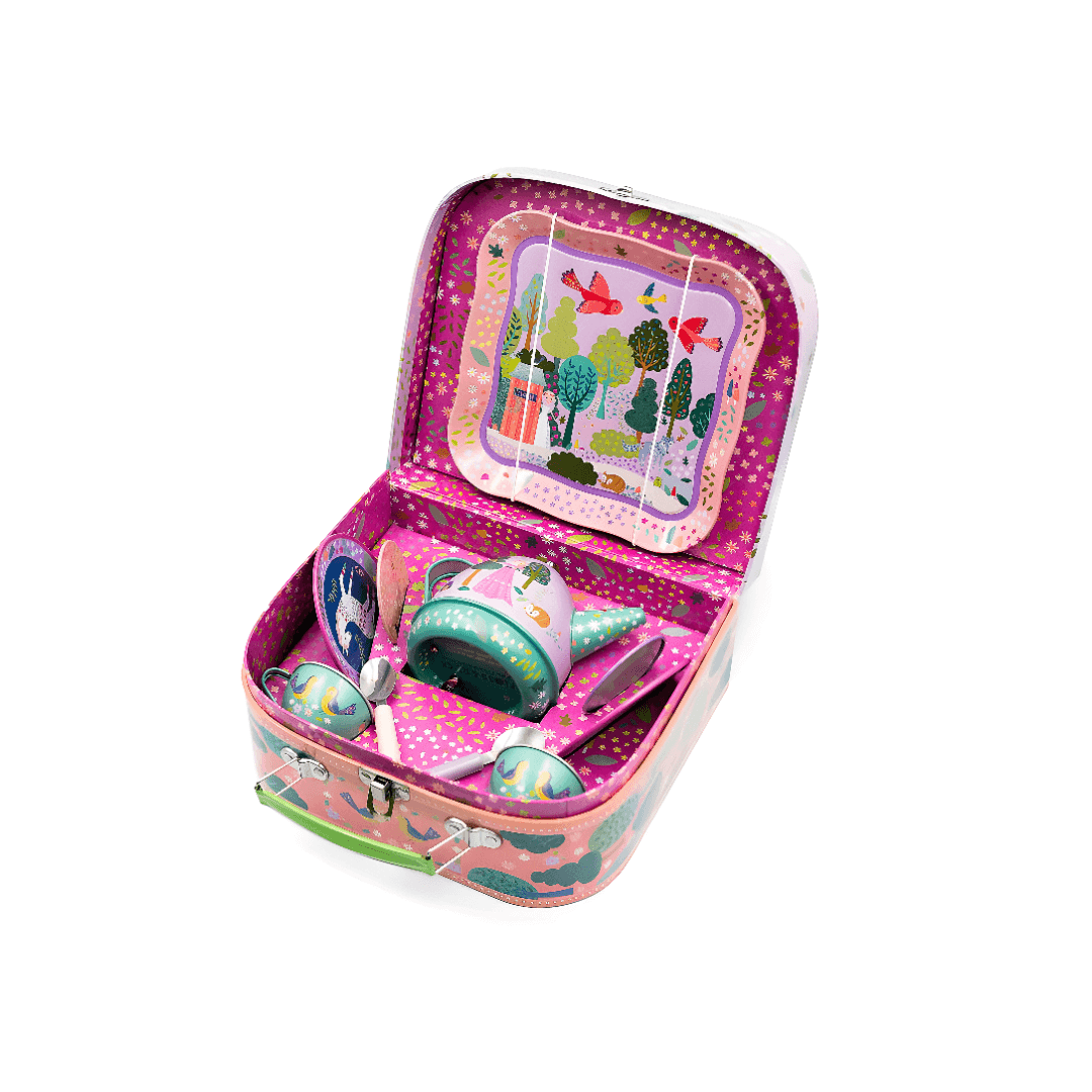 This tea set has a handy carry case to easily store away its 11 pieces keeping the kids room tidy.