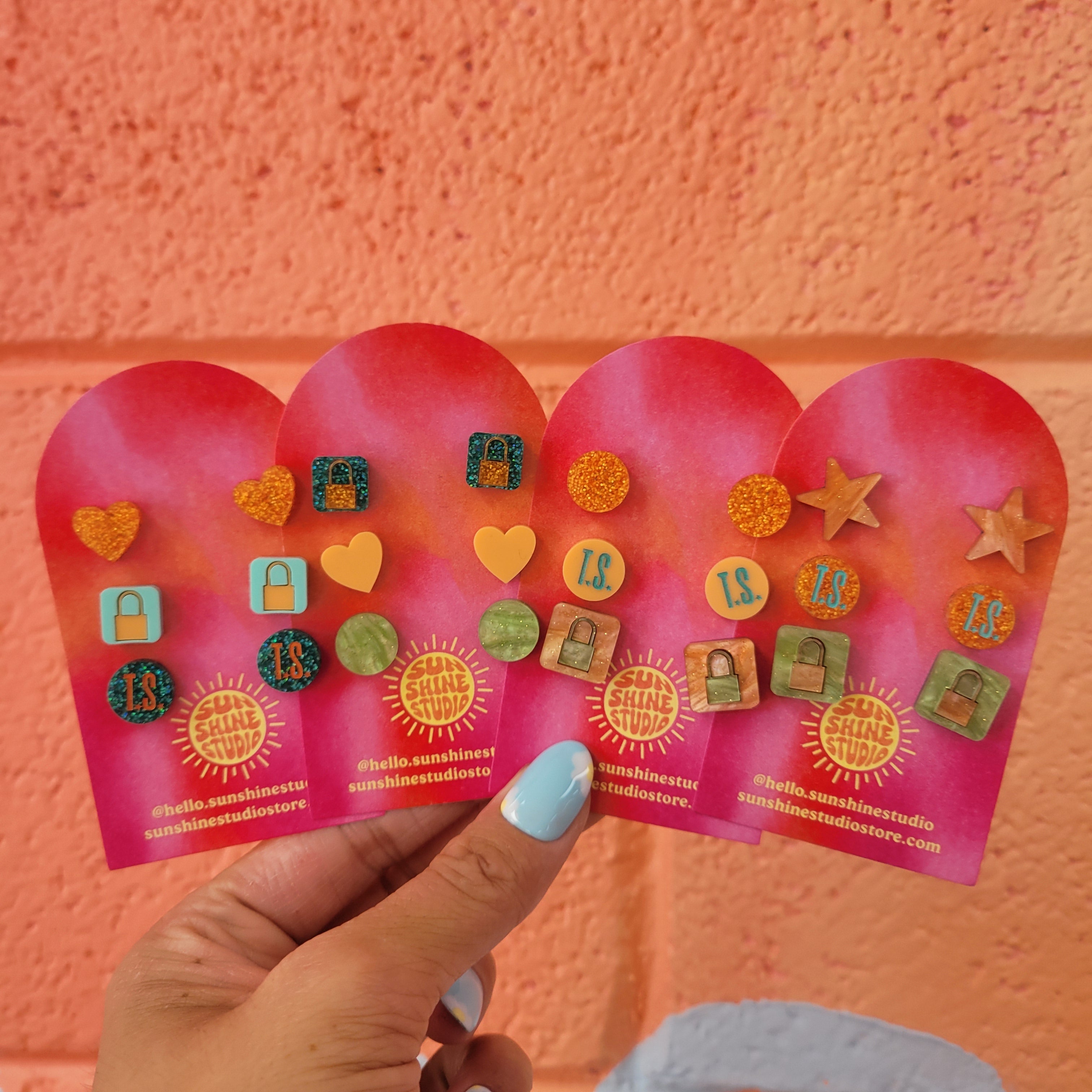 Dive into the 12th Era with our curated earring stud collection! This pack delivers three pairs of contemporary studs, each showcasing trendy hues and eye-catching silhouettes that define the season. From minimalist shapes to bold statement pieces, there's something for every style moment.