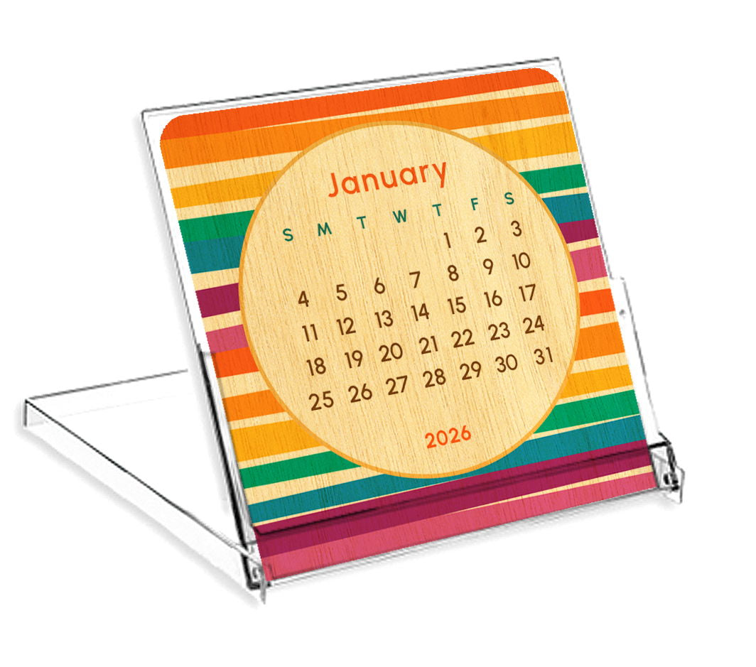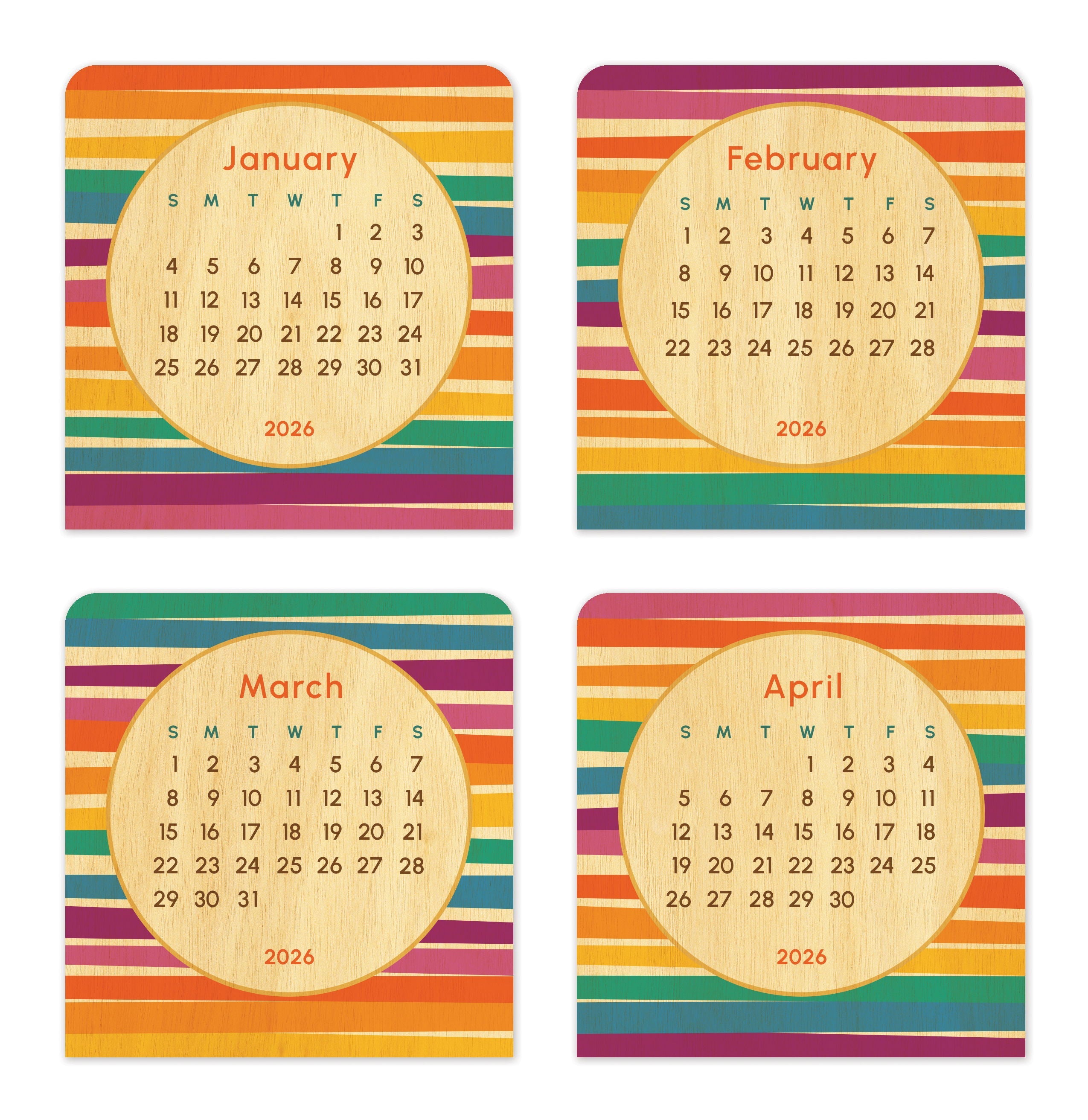 2026 Rainbow Stripes Mini Wood Desk Calendar
