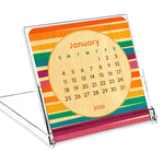 This vibrant 12-month wood desk calendar is bursting with playful rainbow stripes and is designed to bring good vibes to each and every day. Its compact size makes it ideal for display without taking up valuable space. A stylish and cheerful gift for a friend, teacher or co-worker who loves colorful, practical desk accessories.