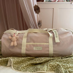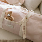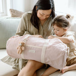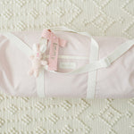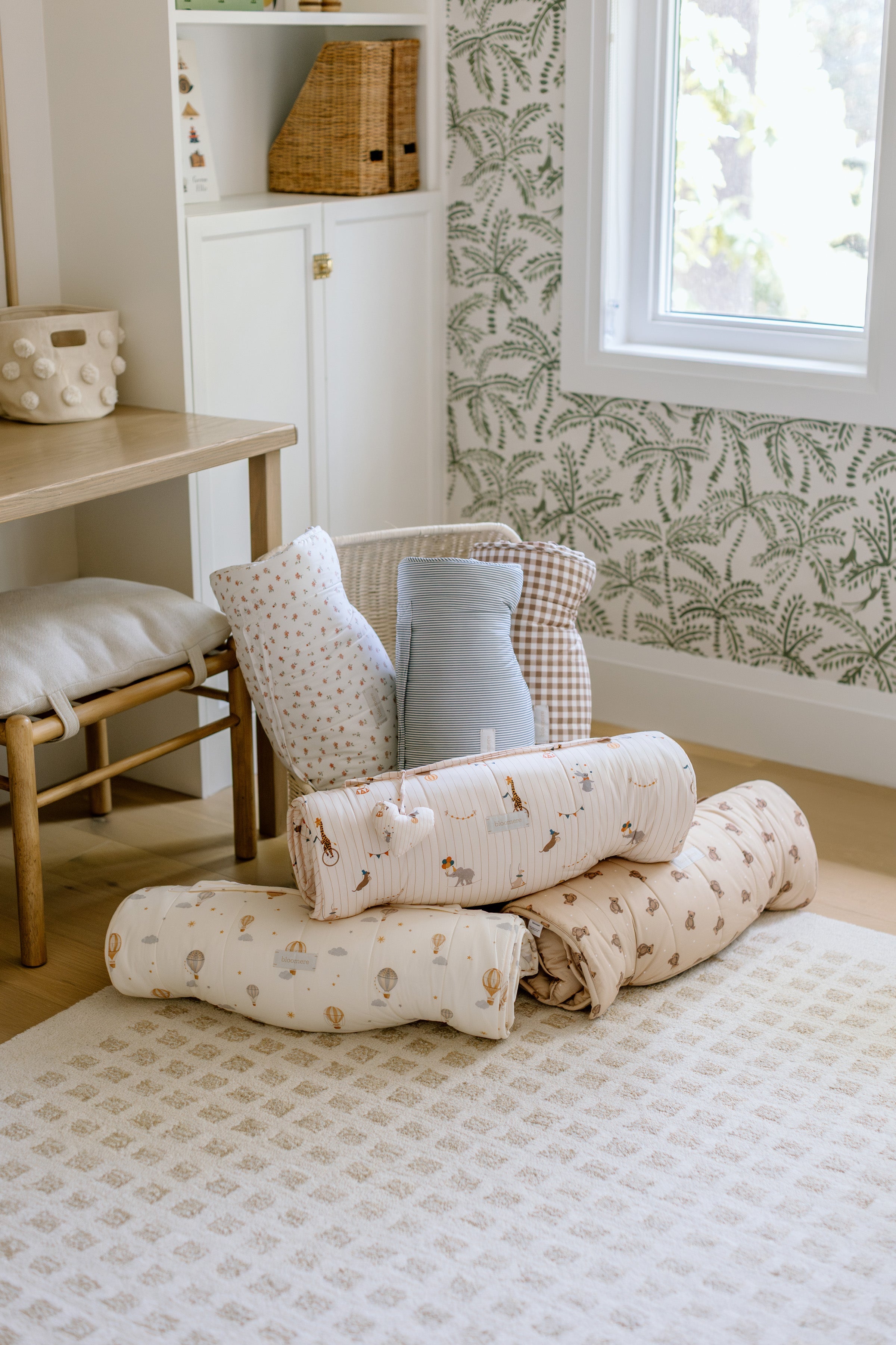This set includes our bestselling nap mat made from 100% organic cotton, complete with a cushioned base, built-in blanket, and removable pillow. The included lightweight waterproof bag is sized to fit the mat perfectly while leaving extra room for a change of clothes, books, or toys. A personalized name tag and miniature accessories add a playful and thoughtful touch.