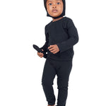Who says black cats are bad luck? This cozy eco-friendly cotton set makes the sweetest Halloween costume, and your little cat can just take off their ears and tail and hop into bed after a long night of trick or treating. Have fun all day from playtime to dreamtime!