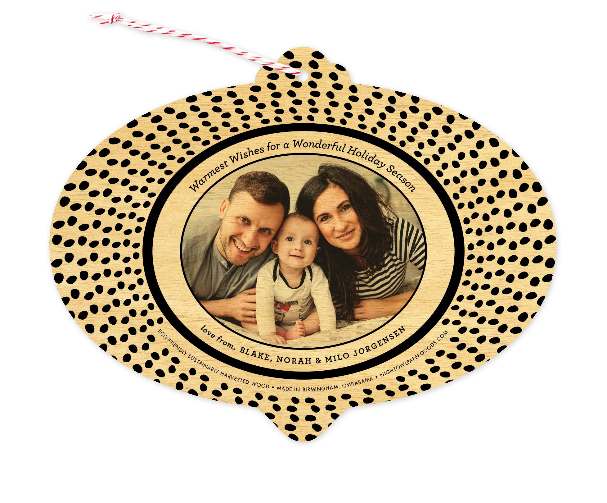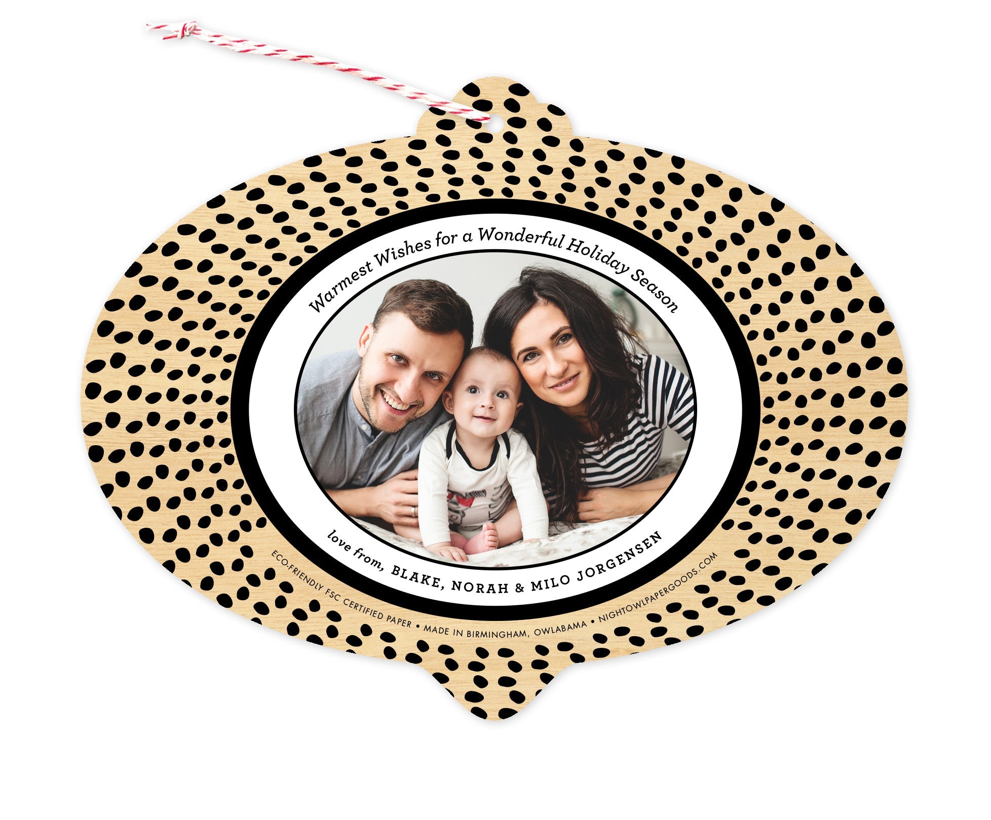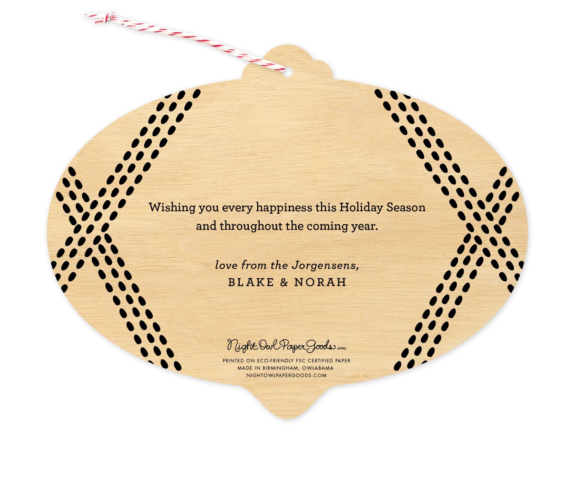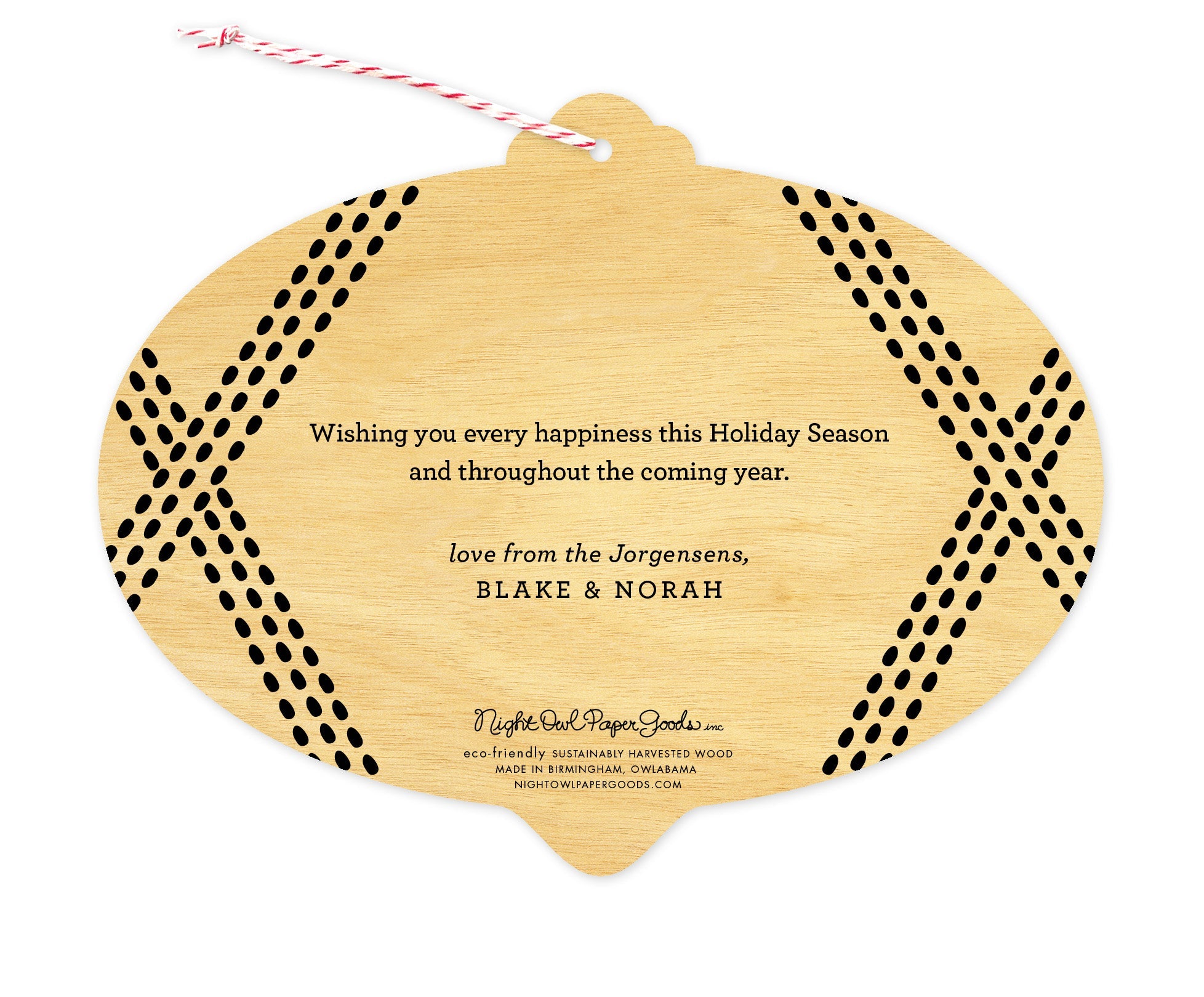 Celebrate the season with our Burst of Joy bulb-shaped holiday ornament cards featuring a striking black-and-white pattern and a cheerful “Joy” greeting. Add your custom text and/or photo to the back. Printed on your choice of real wood or eco-friendly paper, these custom ornament cards are simple to customize and perfect for sending warm wishes to family, friends and coworkers. To get started: