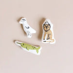 - Includes 1 soft canvas, screen printed pillow and 3 mini plush characters, a goose in a beret, a lion in a crown, and a narwhal