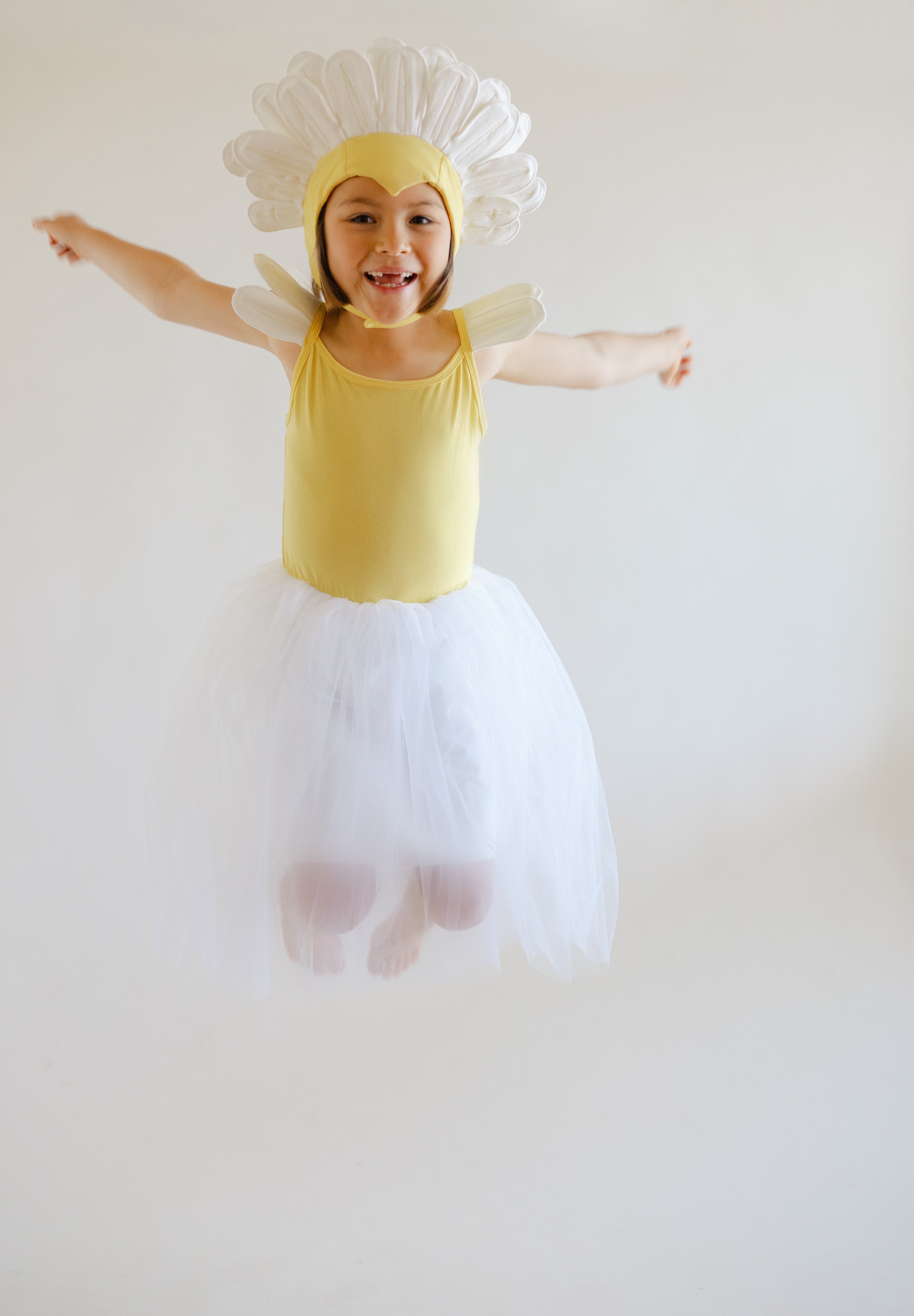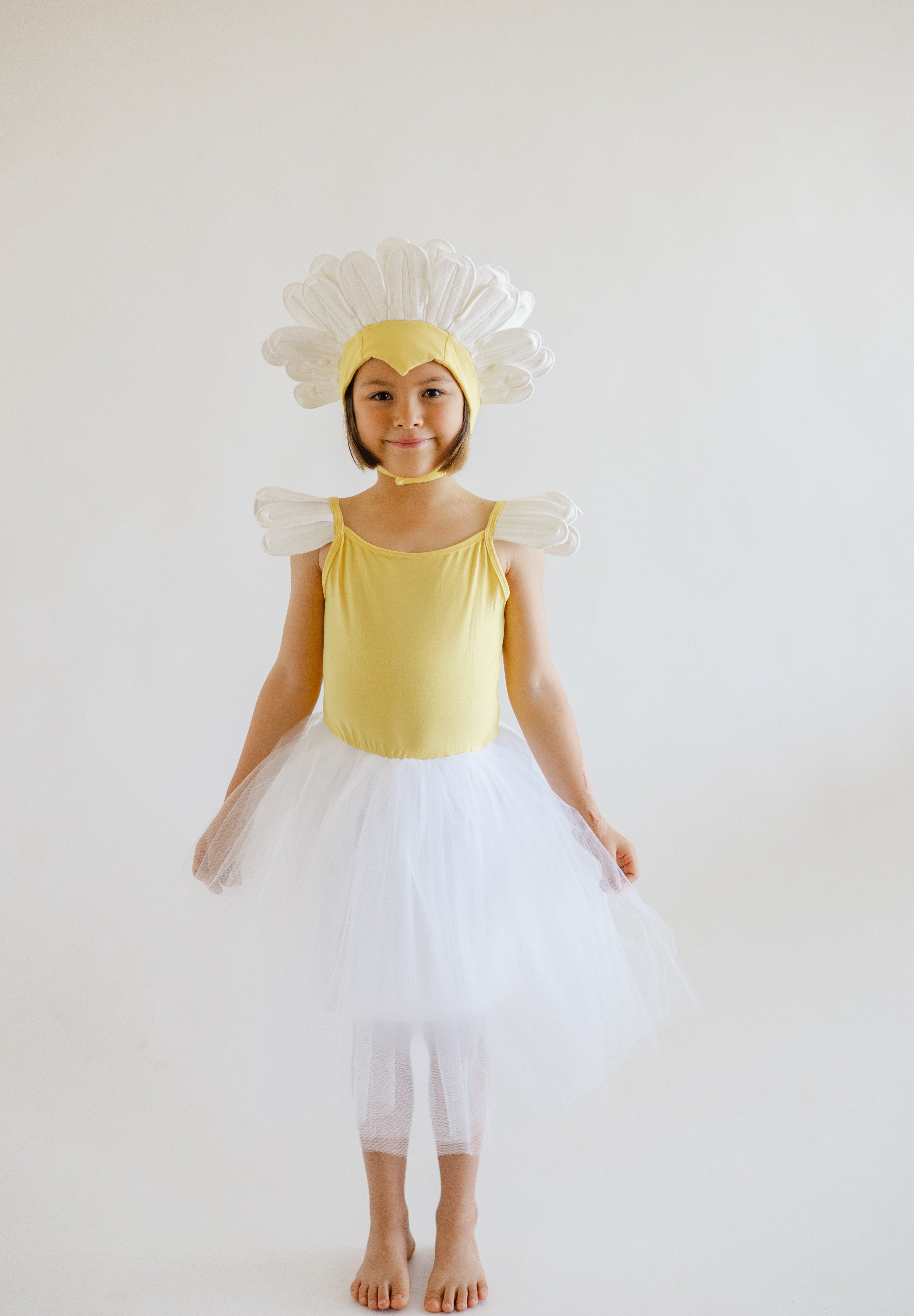 Let your child step into a magical garden with this enchanting Daisy Costume! This whimsical tutu dress features soft white petals at the shoulders of a yellow bodice, perfectly paired with a daisy hat crowned by white, stand-up petals that frame the face like a blooming flower. Straight out of a fairy tale, this costume evokes the magic of a hidden forest or a secret garden, where every child becomes a little flower fairy. Perfect for fairy adventures, outdoor play, or special celebrations, this costume invites your child to bloom in a world of wonder.