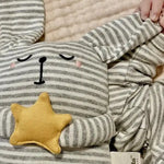 This adorable rabbit is made from 100% stripey organic cotton. Easy to clean by just throwing it in with the other laundry