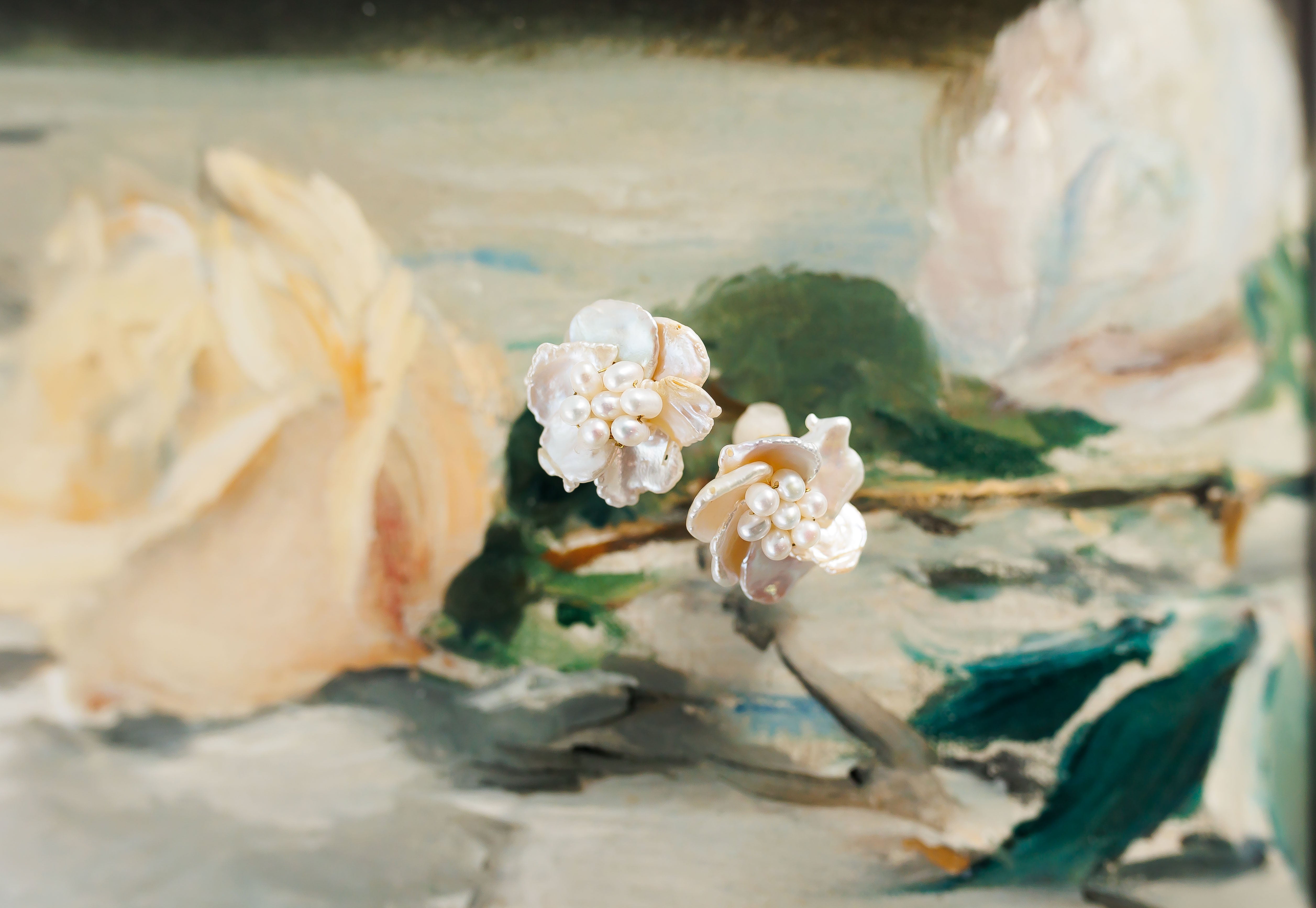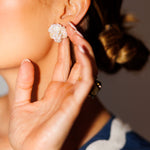 The Magnolia Stud has made her long awaited return- and we cannot be more thrilled to reintroduce her! This beautiful, fully handcrafted stud features natural freshwater pearls intertwined creating an elegant floral stud. The earring has a 22k gold plated stud with post backing and is around 0.75 - 1.0 inches from top of stud to bottom. Due to the nature of the natural pearls, the stud can slightly vary in size.