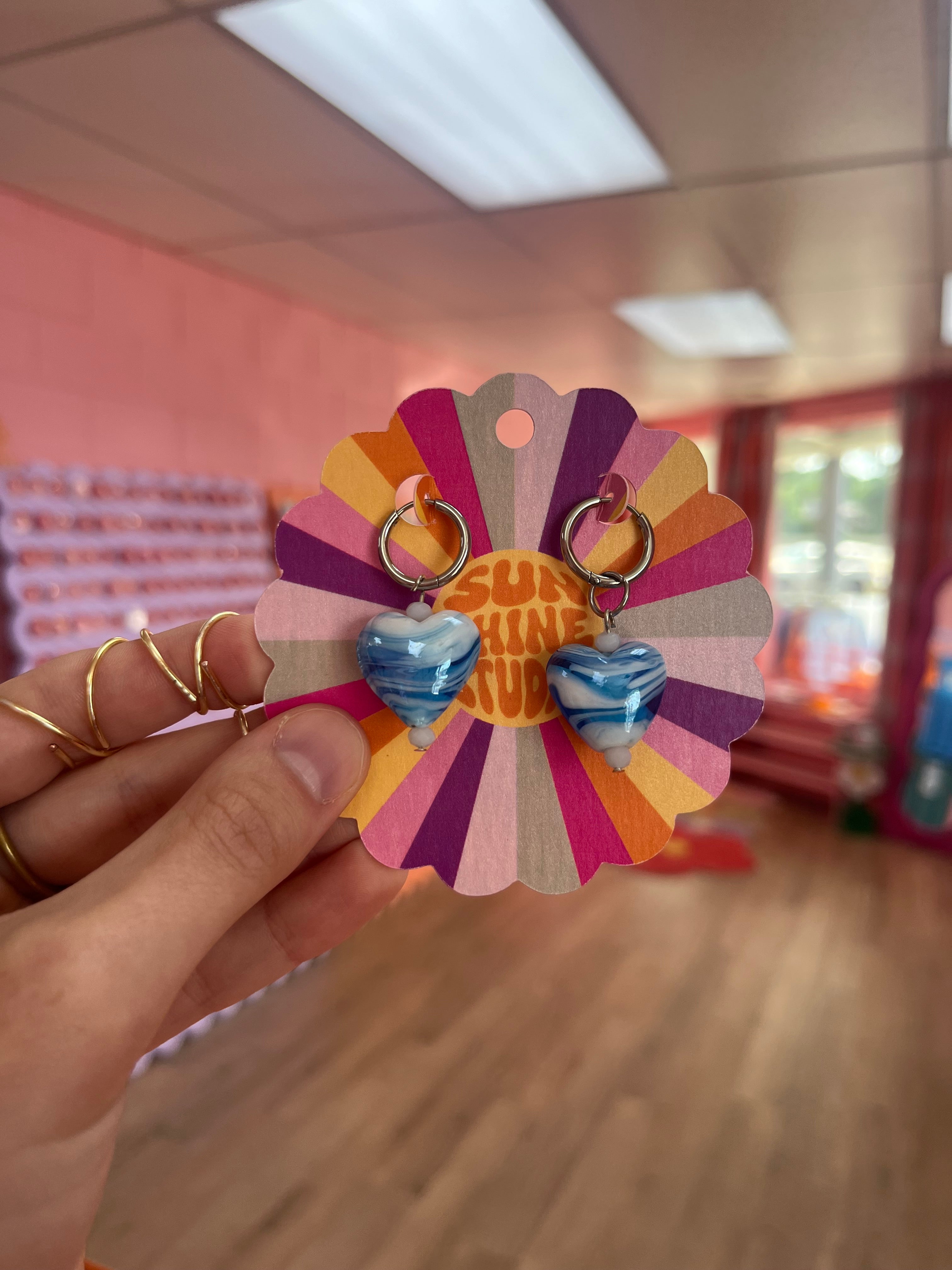 Marble Heart Titanium Earrings