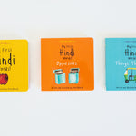 - "My First Hindi Words!" with useful Hindi words your kids will see everyday, "My First Hindi Words! Things That Go" featuring Desi modes of transportation and things that go and "My First Hindi Words! Opposites"-- so your kids can describe things in Hindi, like "cold/thanda" "hot/garam" "small/chota" and more!