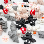 Get ready for spooky season fun with this 3D printed Halloween mystery pack of articulated fidgets! Each pack includes 3 surprise critters—you might receive skeletons, bats, ghosts, mushrooms, or other fall-inspired designs. Every toy is fully articulated for a wiggly, bendy, and fidget-friendly experience that’s as fun to display as it is to play with.
