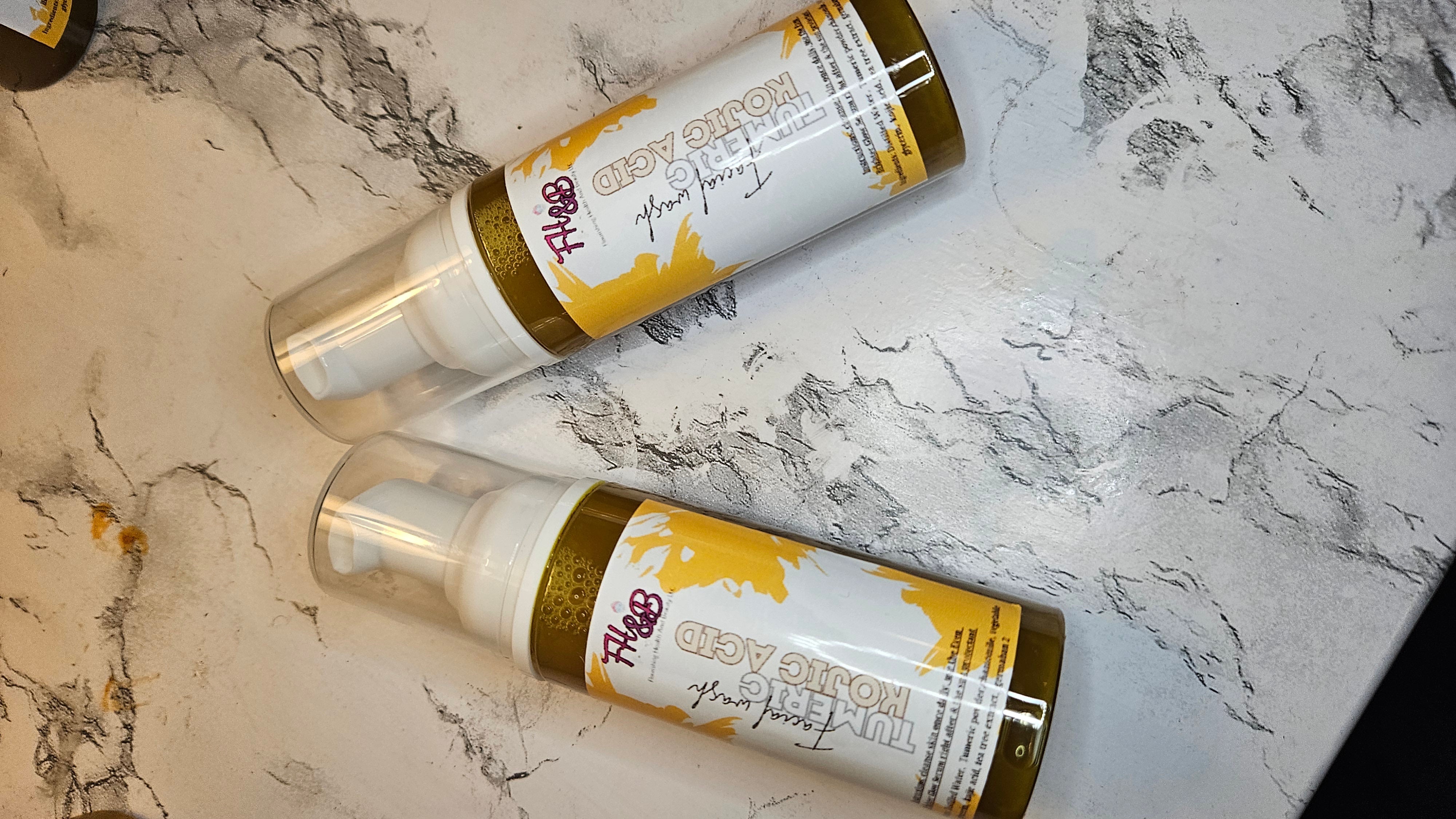 Evens the skin tone, reduce acne ,Minimize fine lines and wrinkles,, reduces eczema.. is formulated using goats milk soap, Tumeric powder, Koji acid, tea tree oil , honey and almond oil.