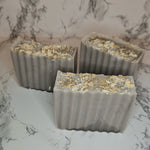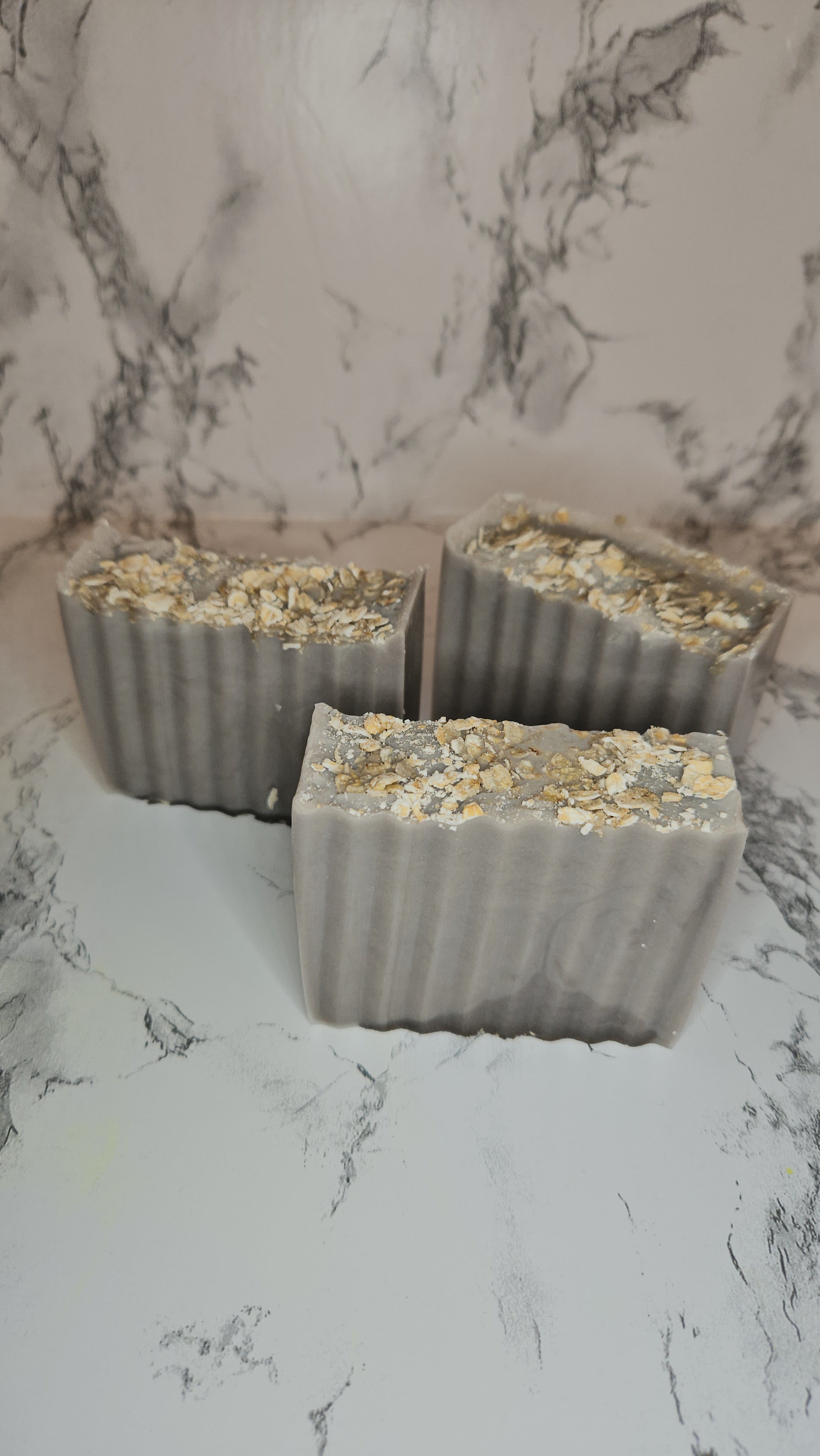 Ingredients: almond oil, vegetable glycerine base, goats milk, oats, neem powder, honey, tea tree oil, and pepper mint oil.