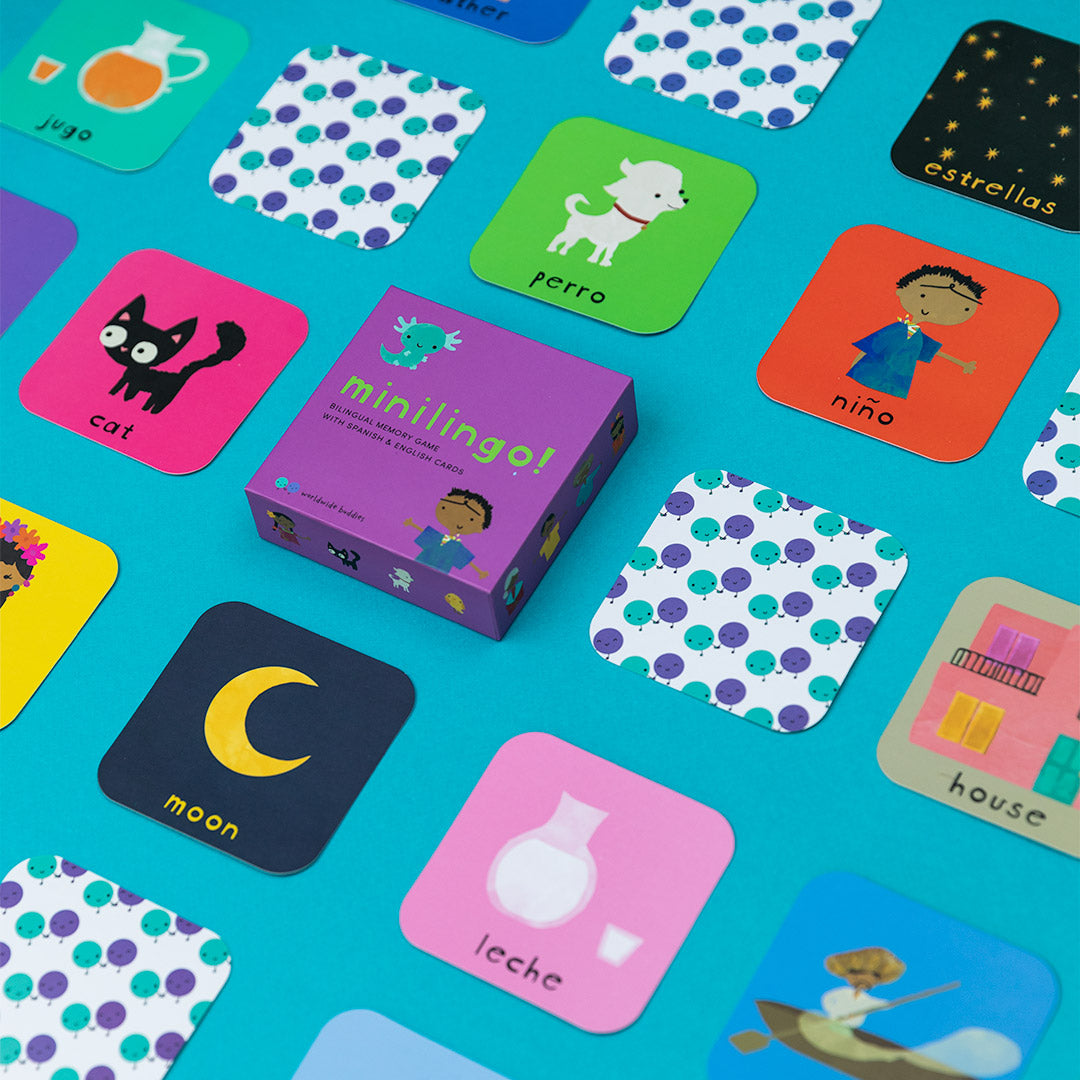 Includes "A marvelous Mexican misunderstanding" picture book, Hermelindo the axolotl plush toy and Minilingo Spanish/English bilingual card game.
